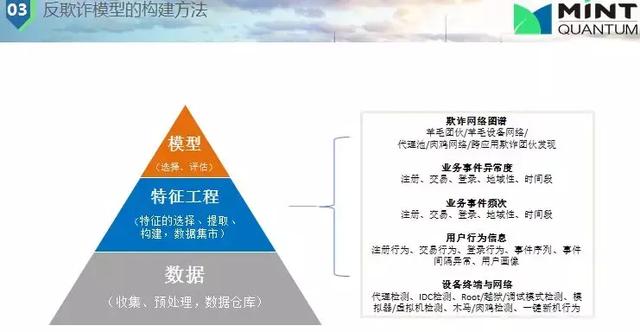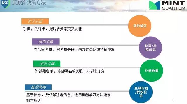 我們常用的一些反欺詐的數(shù)據(jù)和方法有:(1)身份驗(yàn)證,這個(gè)是非常重要的,身份驗(yàn)證在中國很偉大,如中國解決了第三方欺詐的問題。因?yàn)橹袊謾C(jī)實(shí)名認(rèn)證,有些時(shí)候你很難去做假,這樣我們可以交叉驗(yàn)證,這樣就提高了欺詐的成本;(2)法院/征信信息,內(nèi)部黑名單,有公司會(huì)專門整理這些信息,可以公開給我們使用。用戶信息整合,通過各公司間信息碰撞,規(guī)則匹配,如果發(fā)現(xiàn)過去欺詐行為就不給他提供金融服務(wù);(3)模型,評(píng)估用戶行為,進(jìn)行規(guī)則評(píng)判他這種行為是不是欺詐,如何減少錯(cuò)殺準(zhǔn)確抓住欺詐人員。