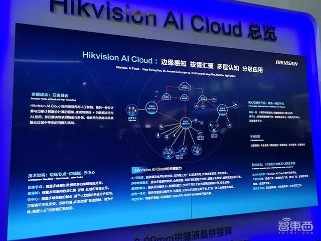 海康威視本次的展區(qū)分成了兩部分,一部分主題為“AI Cloud”,主要介紹??怠皟沙匾粠焖钠脚_”的AI戰(zhàn)略,另一部分為其家用安防子品牌螢石的展區(qū)。