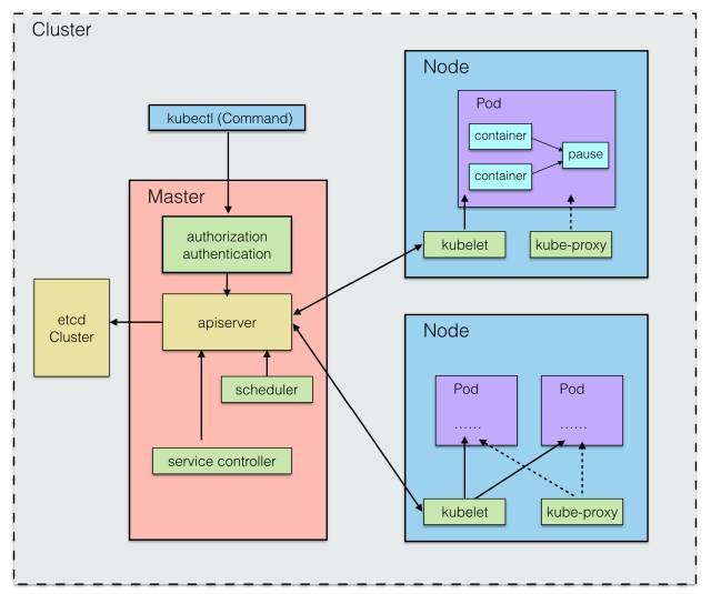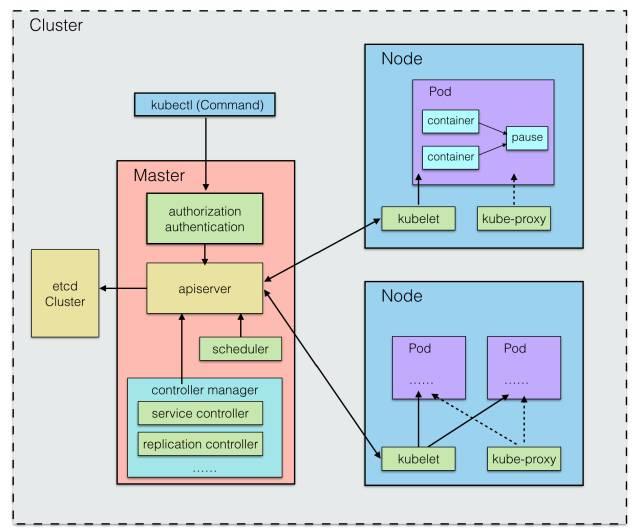 首先,既然是個分布式系統(tǒng),那勢必有多個 Node 節(jié)點(物理主機或虛擬機),它們共同組成一個分布式集群,并且這些節(jié)點中會有一個 Master 節(jié)點,由它來統(tǒng)一管理 Node 節(jié)點。
